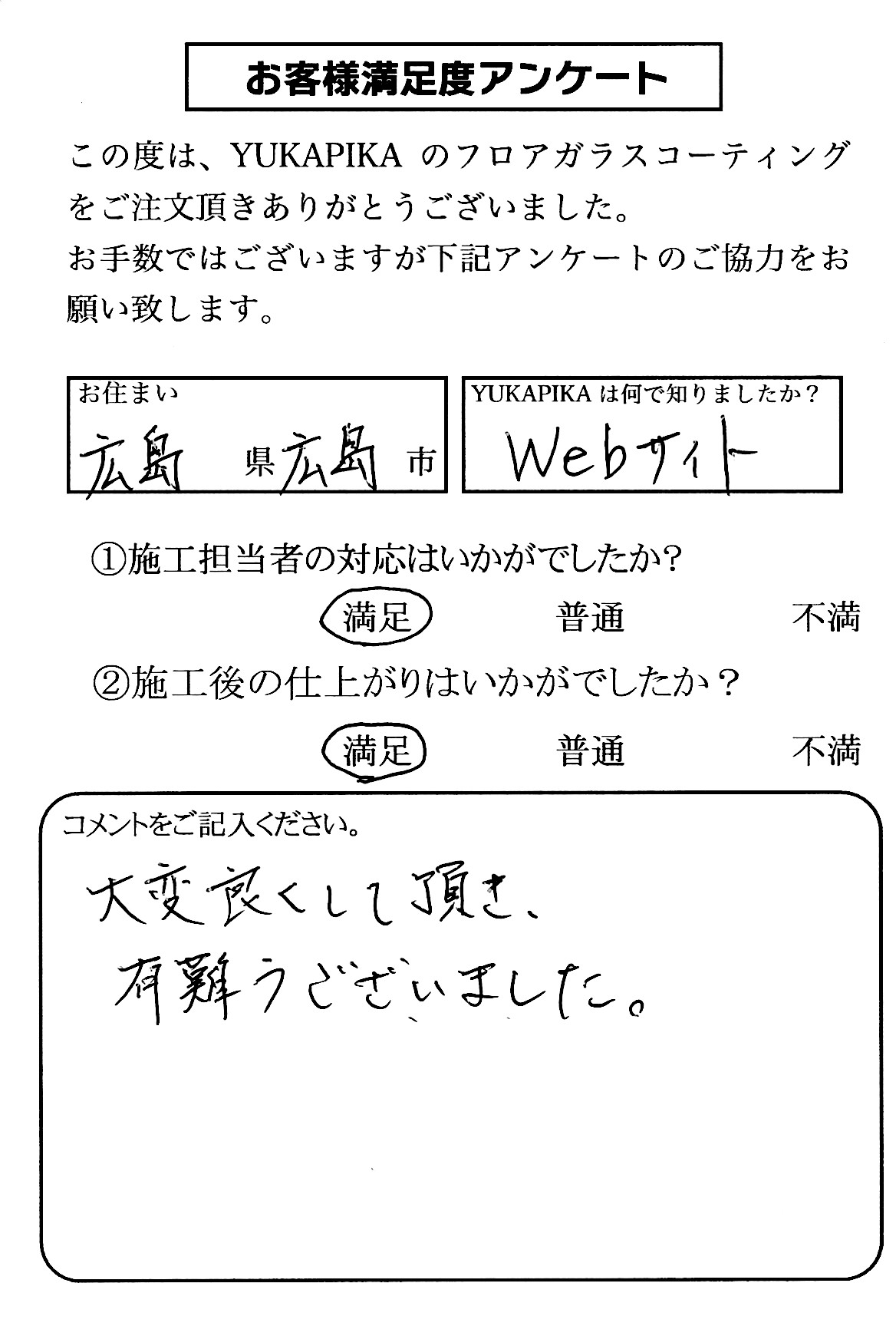 今は親戚や友人が遊びに来ると、みんなビックリして聞いてきますので、みんなにもすすめています。本当にありがとうございました。
